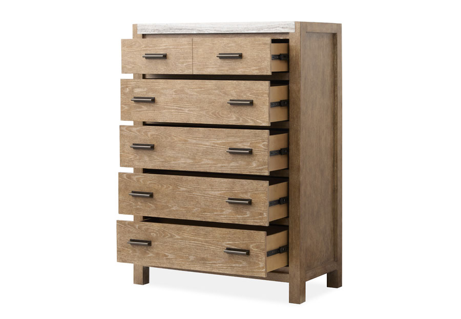 When it's time to rest and unwind, the Plum Creek bedroom collection offers seasonless style. It's clean lines and understated silhouettes convey ageless character designed to feel relevant for generations. A soft, natural Sierra brown finish shows off the beauty of Plum Creek's Random Cathedral Slip/ Flip White Oak veneers while Burnished Bronze hardware adds another layer of visual appeal. Dreamy bed options can be paired with smart storage pieces to create a custom look that evokes nature's soothing beauty.