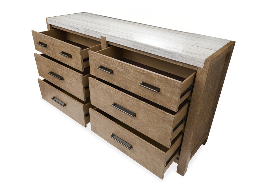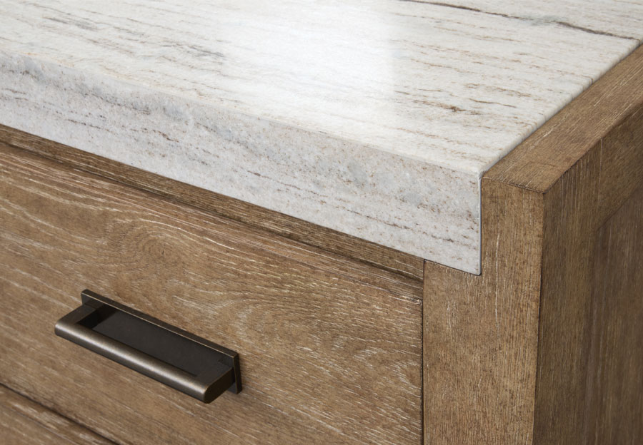 When it's time to rest and unwind, the Plum Creek bedroom collection offers seasonless style. It's clean lines and understated silhouettes convey ageless character designed to feel relevant for generations. A soft, natural Sierra brown finish shows off the beauty of Plum Creek's Random Cathedral Slip/ Flip White Oak veneers while Burnished Bronze hardware adds another layer of visual appeal. Dreamy bed options can be paired with smart storage pieces to create a custom look that evokes nature's soothing beauty.