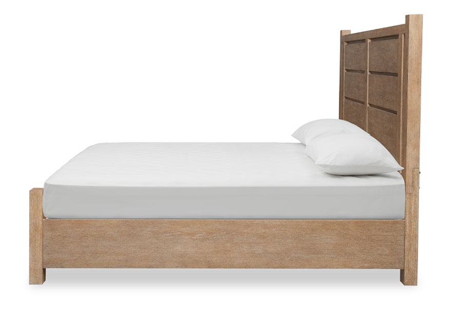 When it's time to rest and unwind, the Plum Creek bedroom collection offers seasonless style. It's clean lines and understated silhouettes convey ageless character designed to feel relevant for generations. A soft, natural Sierra brown finish shows off the beauty of Plum Creek's Random Cathedral Slip/ Flip White Oak veneers while Burnished Bronze hardware adds another layer of visual appeal. Dreamy bed options can be paired with smart storage pieces to create a custom look that evokes nature's soothing beauty.