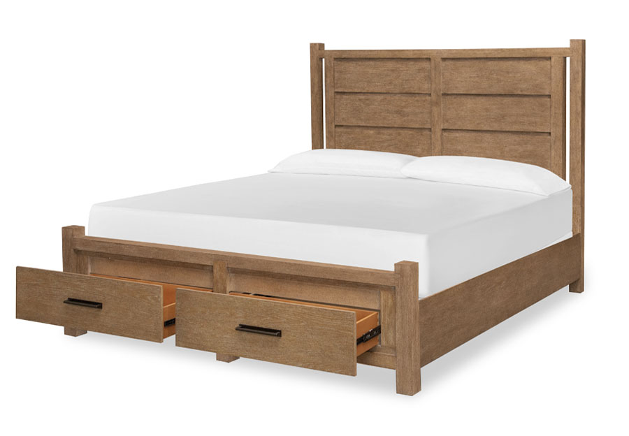 When it's time to rest and unwind, the Plum Creek bedroom collection offers seasonless style. It's clean lines and understated silhouettes convey ageless character designed to feel relevant for generations. A soft, natural Sierra brown finish shows off the beauty of Plum Creek's Random Cathedral Slip/ Flip White Oak veneers while Burnished Bronze hardware adds another layer of visual appeal. Dreamy bed options can be paired with smart storage pieces to create a custom look that evokes nature's soothing beauty.