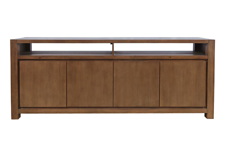 With a warm, natural tone, the Brownstone Console in Suede Finish offers a classic yet contemporary look. Its rich wood finish highlights the clean lines and sturdy craftsmanship, making it a great fit for modern, transitional, or rustic spaces. The spacious storage cabinets keep essentials hidden, while the open shelf provides easy access to media devices. Available in three sizes, this console adapts to any space with ease and sophistication.