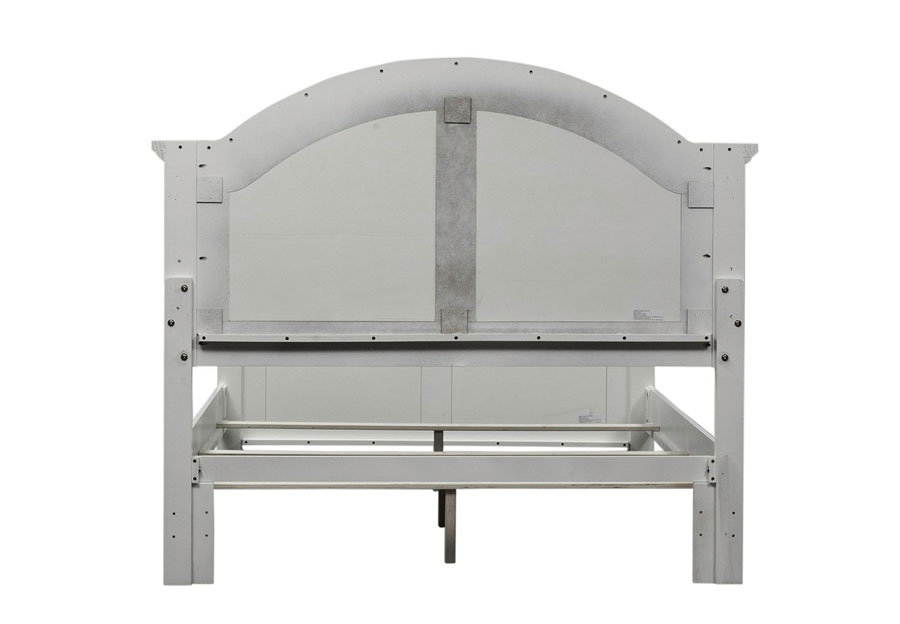 Invite the cottage style Summer House panel bed into your room. The oyster white finish is accented by louvered panels and arched crown molding, adding to the cottage charm. Made of pine and poplar solids, this bed features bolt-on rails and a center supported slat system, making this a sturdy and reliable bed.