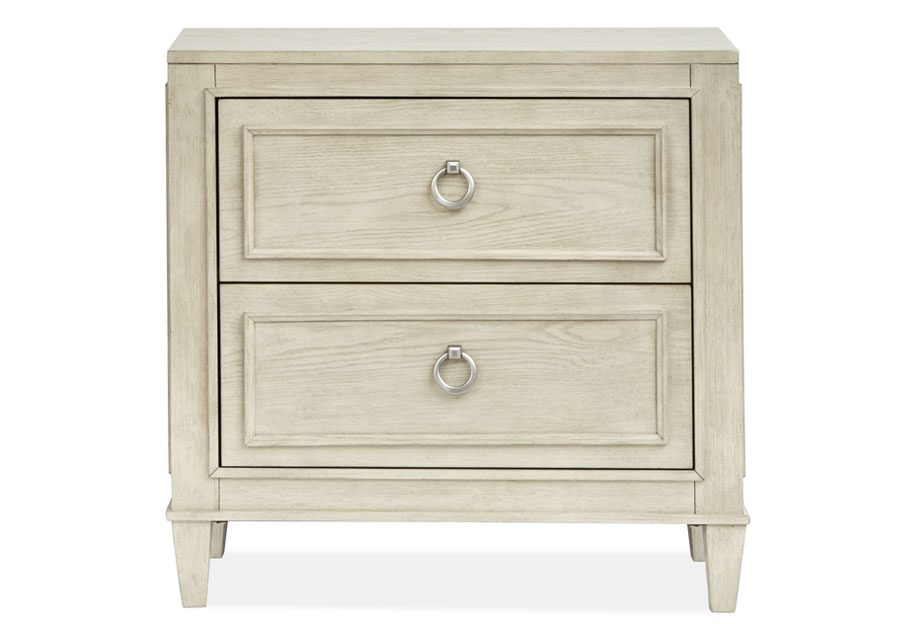 Nothing transforms a space like the expressive beauty of the Sheridan bedroom collection. Casual and comfortable, these transitional designs can be dressed up or down and accessorized to complement any decorating style. Crafted for long-lasting durability, Sheridan features random Cathedral/ Quartered Knotty White Oak veneers and hardwood solids accented with jewelry-inspired Satin Nickel hardware. A soft Limestone finish highlights the paneled elements and timeless design details of these versatile beds and coordinating storage pieces. The natural choice for taking any bedroom from boring to inspired, Sheridan creates a space that's familiar yet refined.