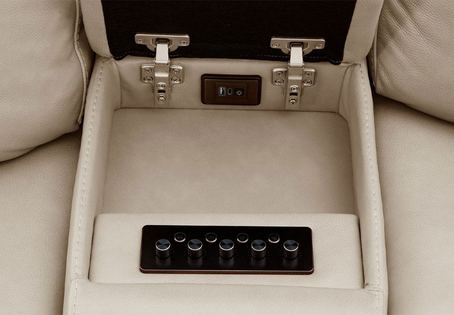 The Zenith Collection blends timeless comfort with cutting-edge innovation, crafted for those who expect more from every detail. Thoughtfully designed seating and premium materials create an inviting experience, while discreet charging options add modern convenience without compromising style. At the heart of the collection is Bluetooth connectivity, delivering rich, immersive sound with impressive depth and clarity. As part of our Kuka Motion Sound Sphere Series, each piece is engineered with an advanced control panel, transforming everyday relaxation into a refined, immersive luxury experience.