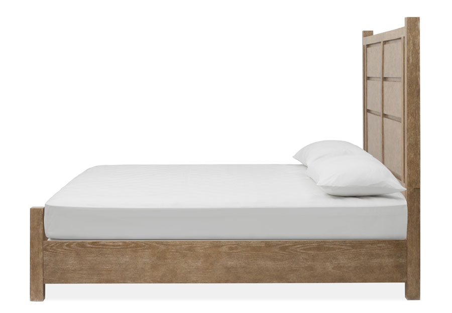 When it's time to rest and unwind, the Plum Creek bedroom collection offers seasonless style. It's clean lines and understated silhouettes convey ageless character designed to feel relevant for generations. A soft, natural Sierra brown finish shows off the beauty of Plum Creek's Random Cathedral Slip/ Flip White Oak veneers while Burnished Bronze hardware adds another layer of visual appeal. Dreamy bed options can be paired with smart storage pieces to create a custom look that evokes nature's soothing beauty.