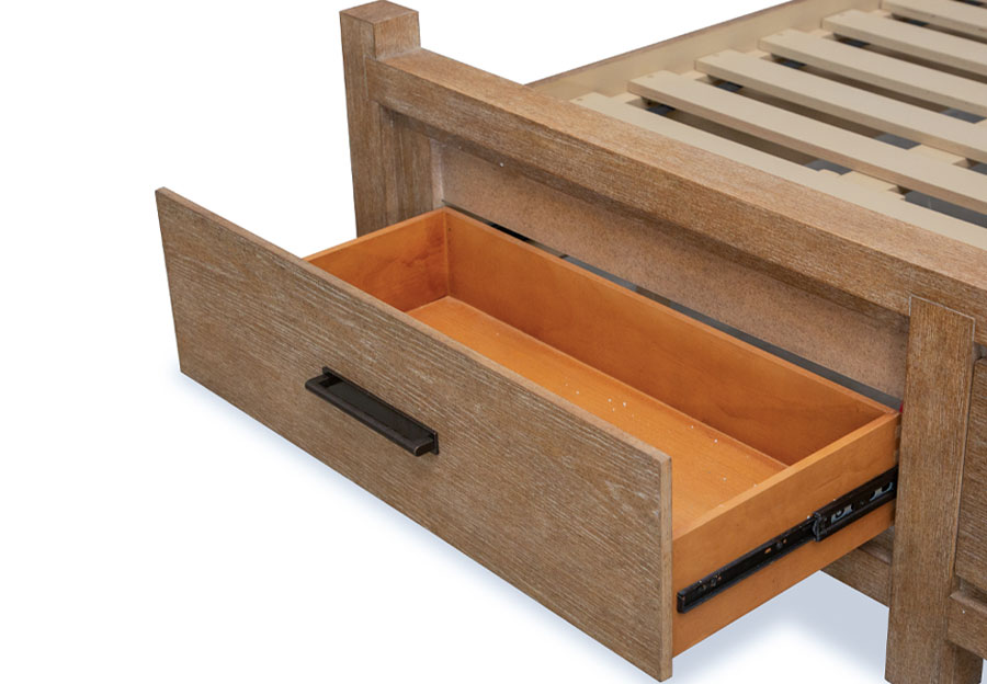 When it's time to rest and unwind, the Plum Creek bedroom collection offers seasonless style. It's clean lines and understated silhouettes convey ageless character designed to feel relevant for generations. A soft, natural Sierra brown finish shows off the beauty of Plum Creek's Random Cathedral Slip/ Flip White Oak veneers while Burnished Bronze hardware adds another layer of visual appeal. Dreamy bed options can be paired with smart storage pieces to create a custom look that evokes nature's soothing beauty.