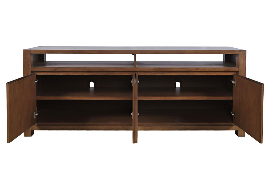 With a warm, natural tone, the Brownstone Console in Suede Finish offers a classic yet contemporary look. Its rich wood finish highlights the clean lines and sturdy craftsmanship, making it a great fit for modern, transitional, or rustic spaces. The spacious storage cabinets keep essentials hidden, while the open shelf provides easy access to media devices. Available in three sizes, this console adapts to any space with ease and sophistication.
