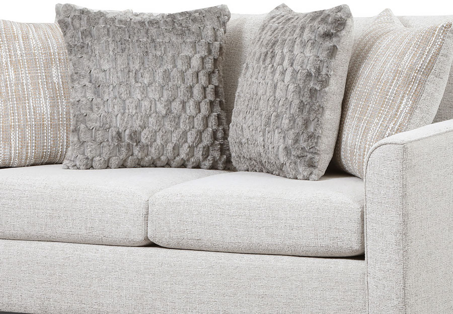 The Irving Collection blends soft sophistication with everyday comfort. Available in Cream or Charcoal, its upholstered in a rich textured fabric and accented with plush designer pillows for added depth and style. Built-in cupholders and USB ports bring modern convenience to its timeless design-elegant, inviting, and effortlessly livable.