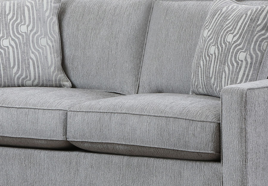 Classic and posh styling characterize the beautiful Bowmore collection by Behold Home. This collection is sure to give your living room an instant luxe feel! You'll love the large frame, soft chenille fabric and neutral color palette. The correlating pillows, padded low-track arms, and dark-stained tapered legs, make the idea fashion statement without sacrificing comfort.