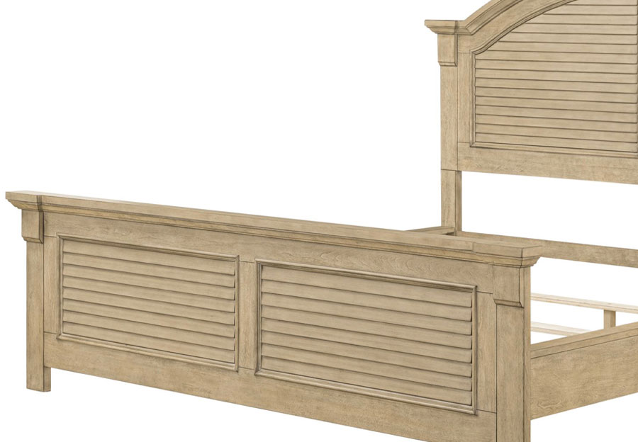 Invite the cottage style Summer House panel bed into your room. The natural finish is accented by louvered panels and arched crown molding, adding to the cottage charm. Made of pine and poplar solids, this bed features bolt-on rails and a center supported slat system, making this a sturdy and reliable bed.